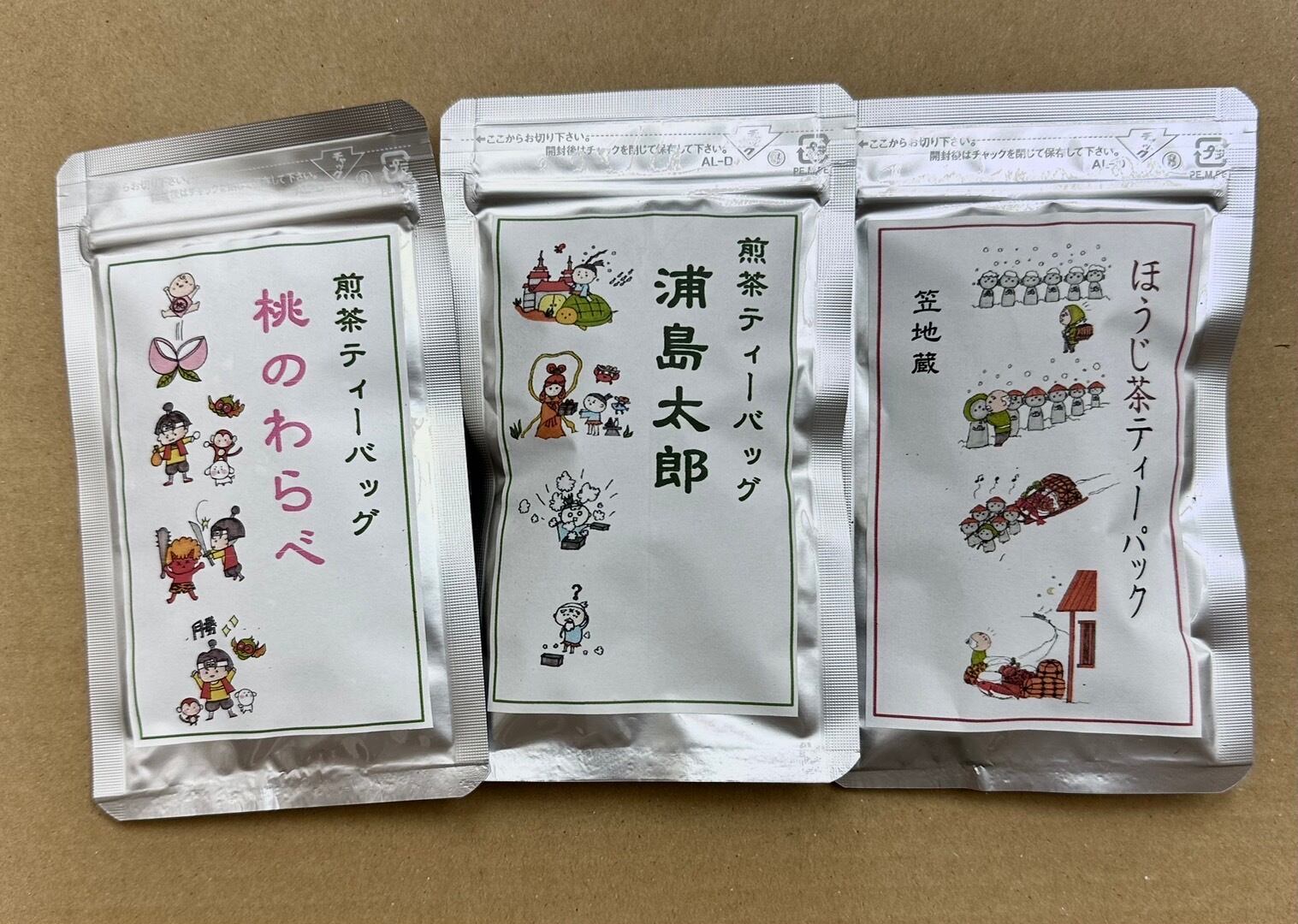 静岡県産の深蒸し煎茶2種類とほうじ茶のお試しセットで、それぞれ3個ずつ入っています。
